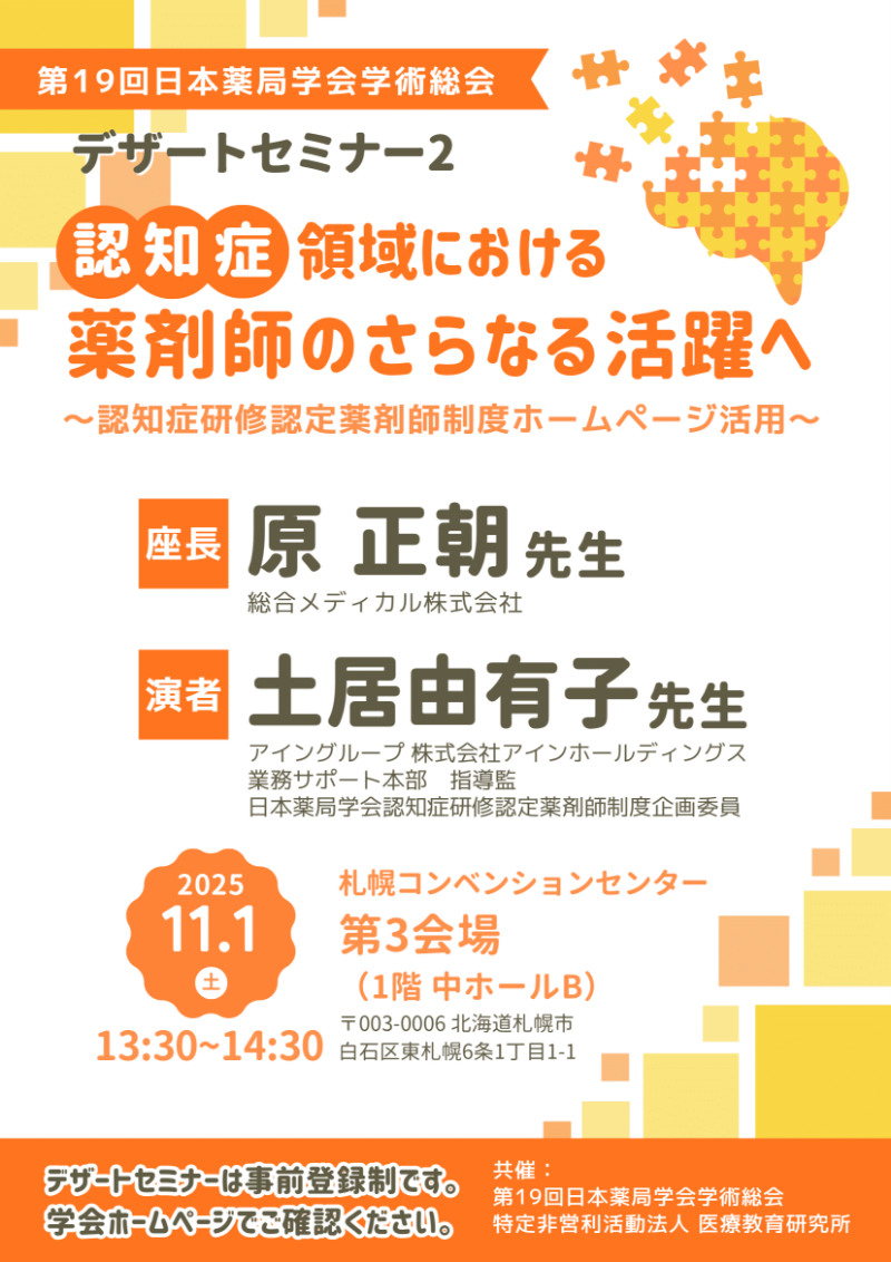 - 土居 由有子(日本薬局学会 認知症研修認定薬剤師制度 企画委員